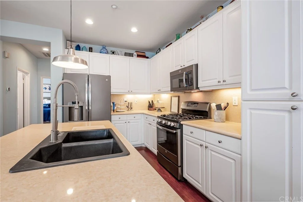This desirable carriage house condo, in the Cape Cod styled Davenport community of Ladera Ranch, exemplifies pride of ownership. It has been beautifully maintained, with a full re-pipe less than 4 years ago, newer custom paint, and updated recessed lighting. The home includes a fully finished attached 2-car garage, wood flooring throughout the living area, a laundry room/area, separate tub and shower in the main bedroom, and convenient access to main ingress/egress in Ladera. The light and bright floor plan offers an inviting open living space and an oversized main bedroom. The entry is on the ground floor, with both bedrooms and living space upstairs. Enjoy nearby parks, pools, hiking and biking trails, picturesque tree-lined streets and plenty of open spaces.